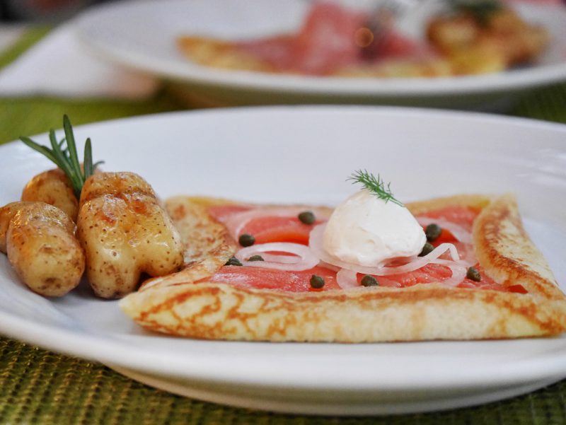 しょっぱめサーモンがクレープ生地に合います。美味しい。
