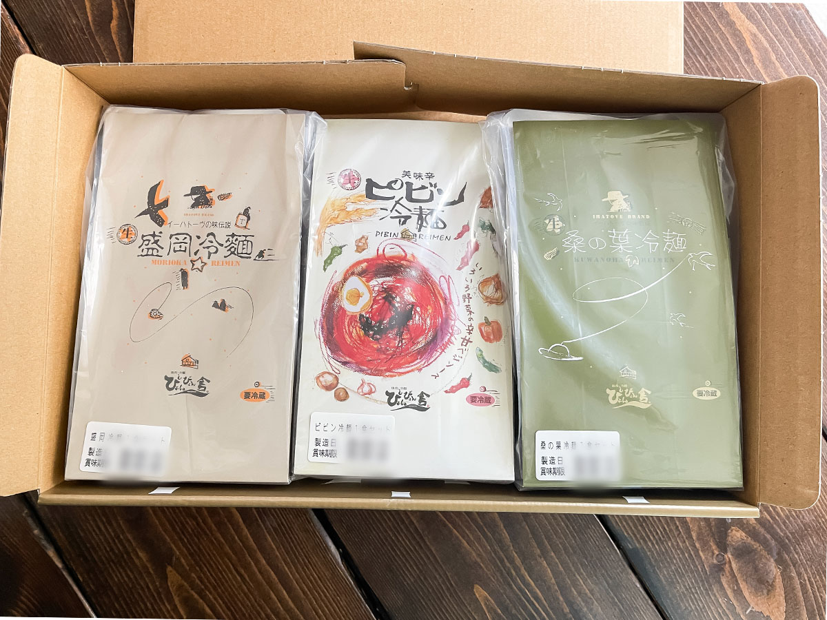 桑の葉冷麺・盛岡冷麺・ピビン冷麺の3種類です。それぞれ 1食分です。