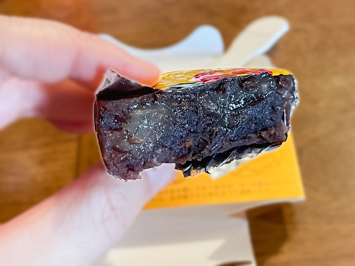 裏のシールが固くてうまく切れませんでしたが無事に半分こになりました(´罒`) あんこの甘さと硬さがちょうど良くて美味しいです!中に入っている求肥も柔らかくてとろっとしていて一体感があります。
