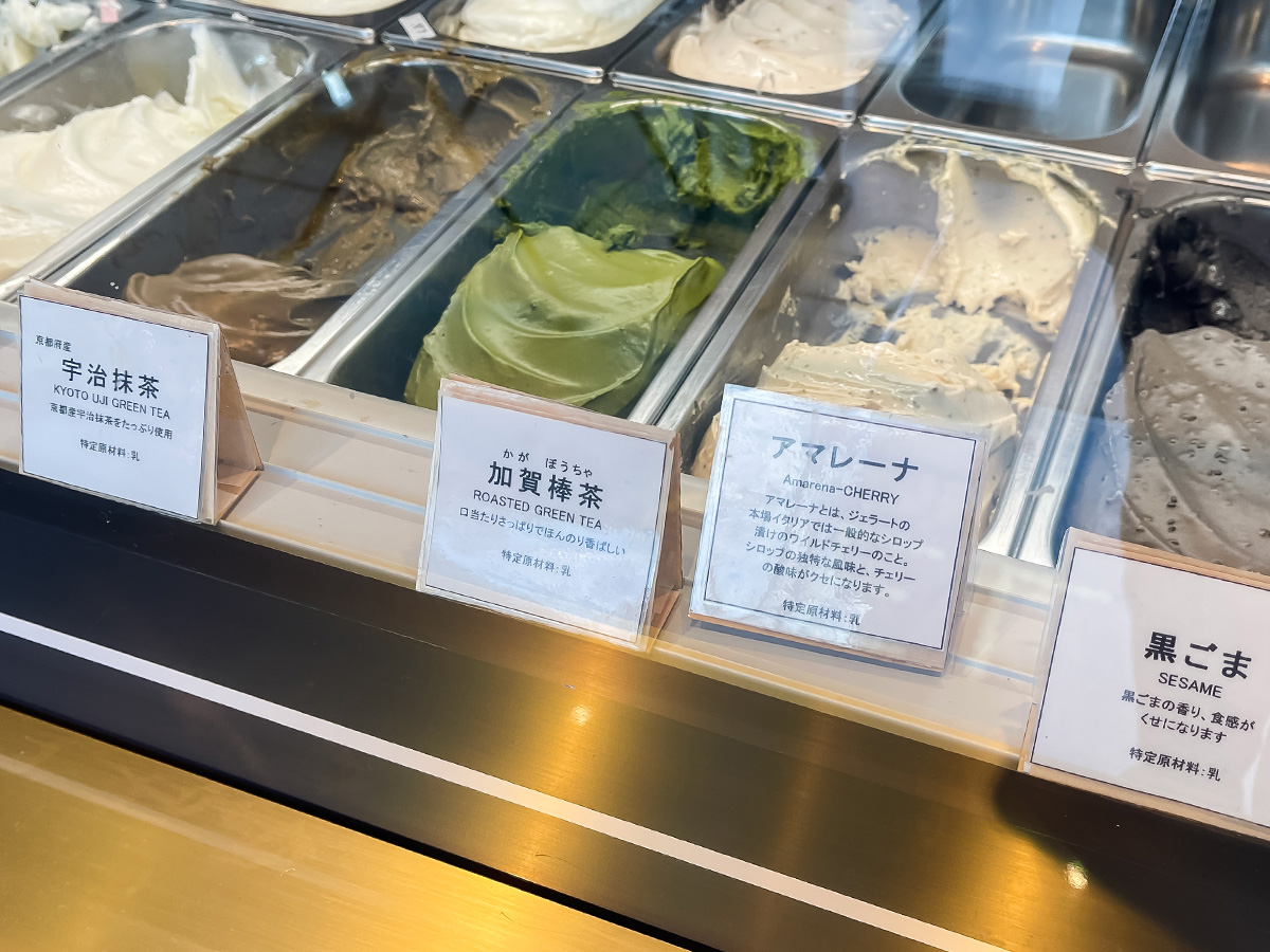 こちらのジェラートは “能登ミルクのむヨーグルト” と “加賀棒茶” です。