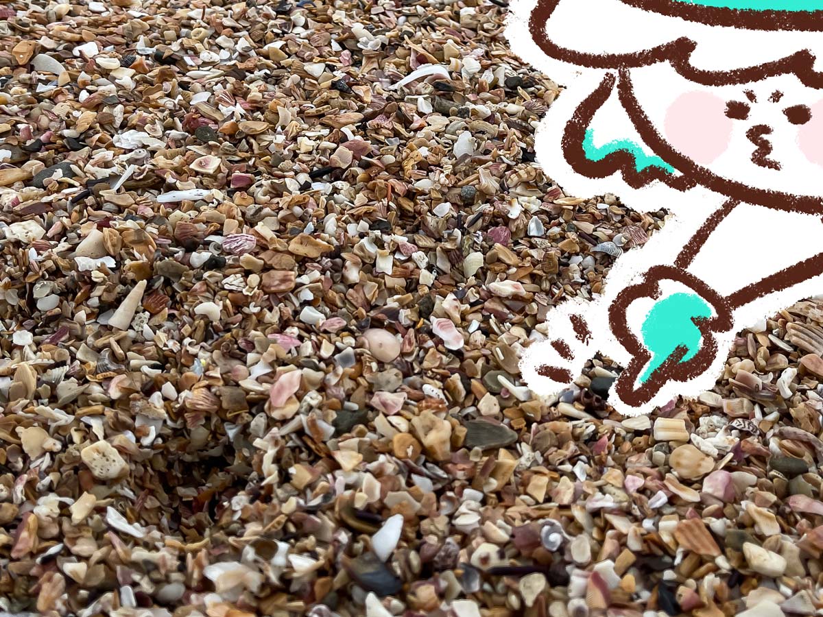 砂かと思った部分はいろんな貝の殻が溜まってできたものでした。これはすごい量だ〜